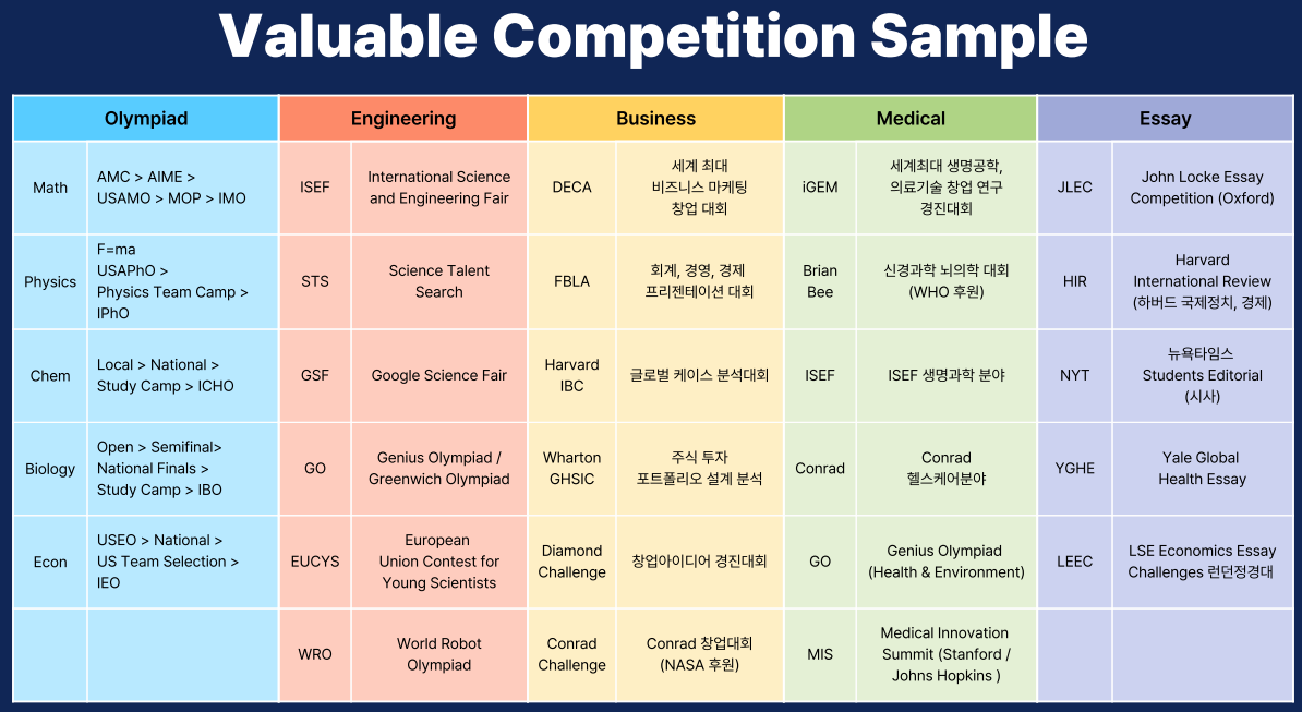 ๊ทธ ๋ฟ ์๋๋ผ ์์๊ถ ๋ํ์ ๋ชฉํ๋ก ํ๋ ํ์๋ค์๊ฒ๋ Olympiad ์ ๊ฐ์ ๊ฐ์ข ํ์ ๋ํ ์ค๋น, Pre-Collage Camp ์ค๋น, Essay ๋ํ ์ค๋น๋ ์งํํฉ๋๋ค.
